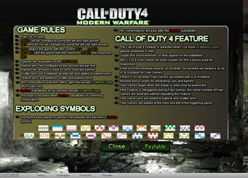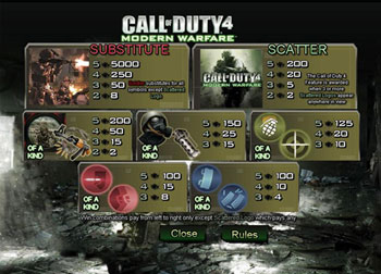 - When three or more scattered Logo symbols appear anywhere in view, the Call of Duty 4 Feature is awarded.