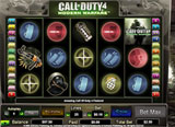 Call of Duty 4 is a five-reel, twenty-five-line Non Jackpot slot game with two bonus features. The first feature is a random exploding symbol which will create other wild SOLDIER symbols on the reels. This is random and you'll either see a grenade being thrown onto the screen exploding some symbols, or you'll see a soldier run up and plant explosives on the reels.